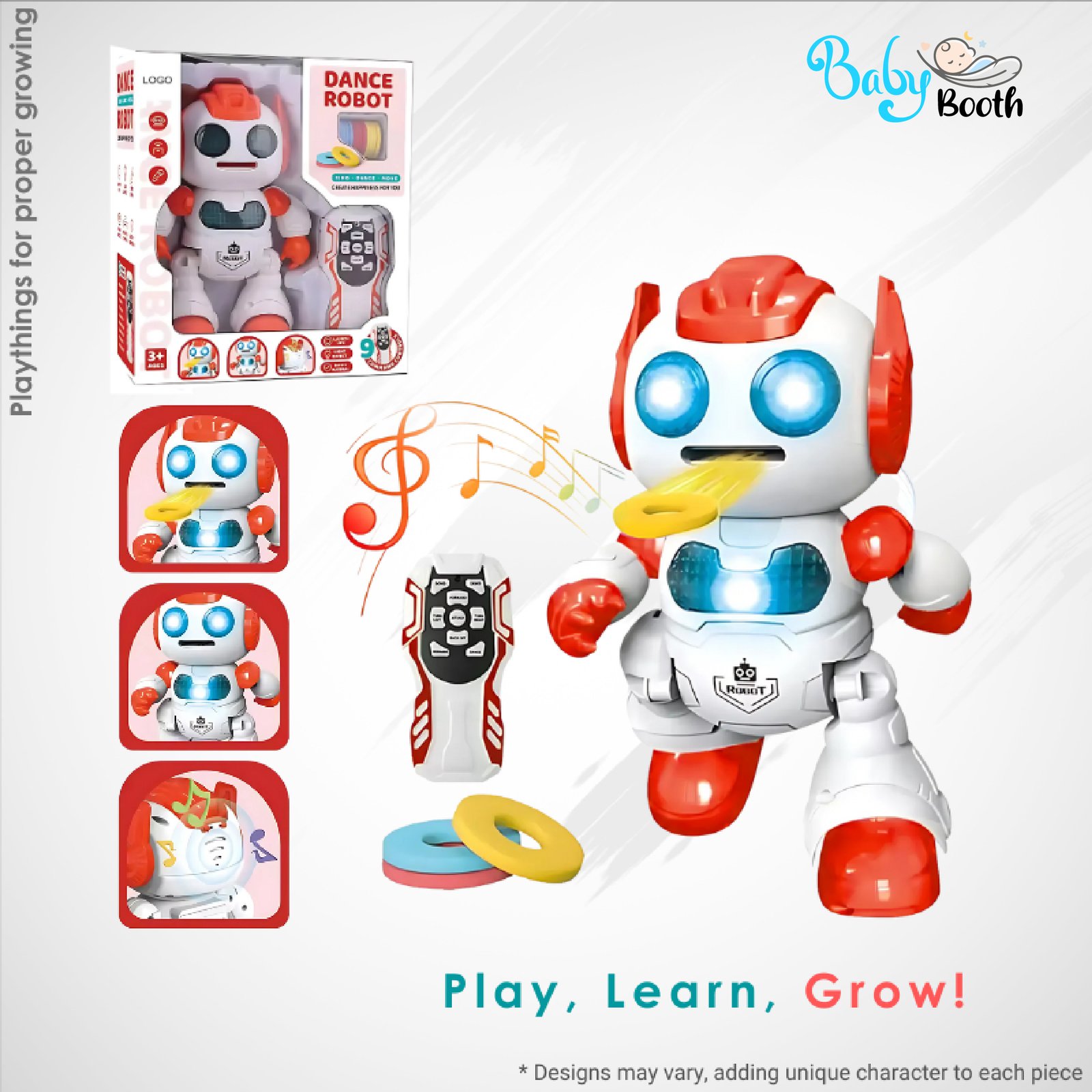 • Sing, Dance & Move – The robot entertains with lively music and dance moves, making it a great companion for playtime and parties.